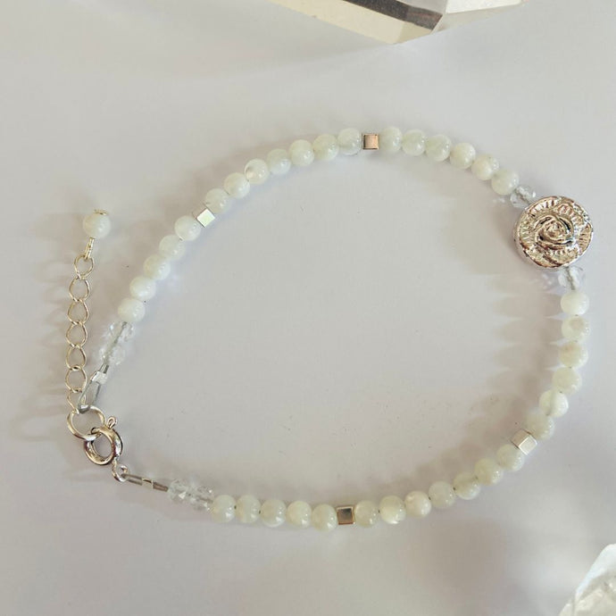 Mother of Pearl × Clear Quartz × Silver Hematite × Silver Rose Bracelet
